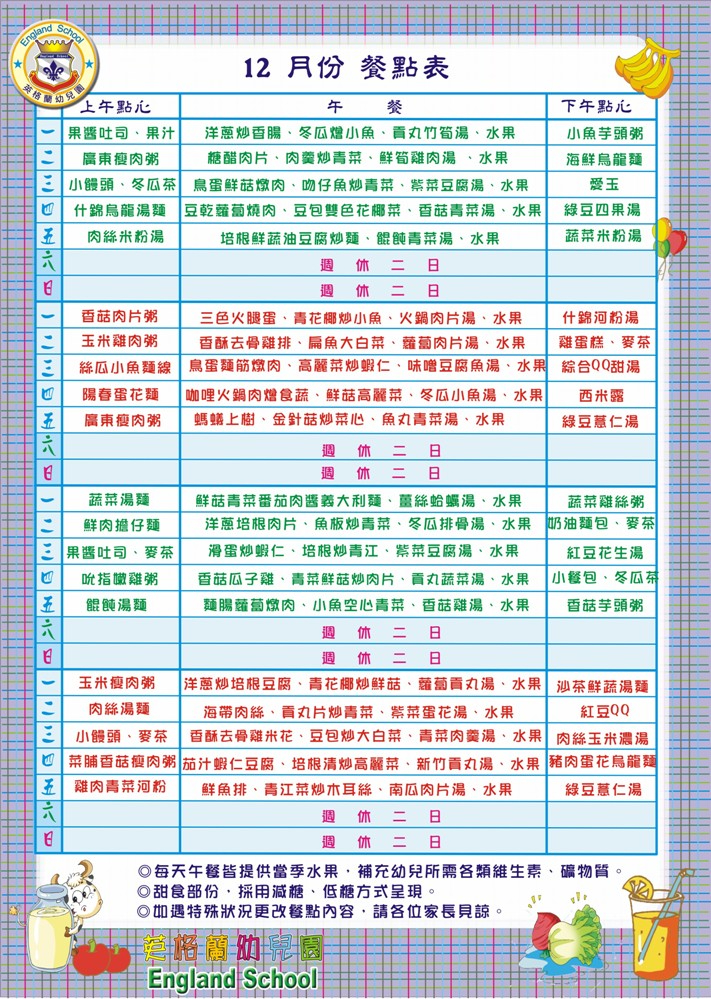 12月份 餐 點 表